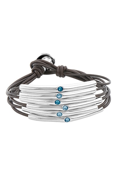 Bracciale in pelle e placcato argento con cristalli sfaccettati.
