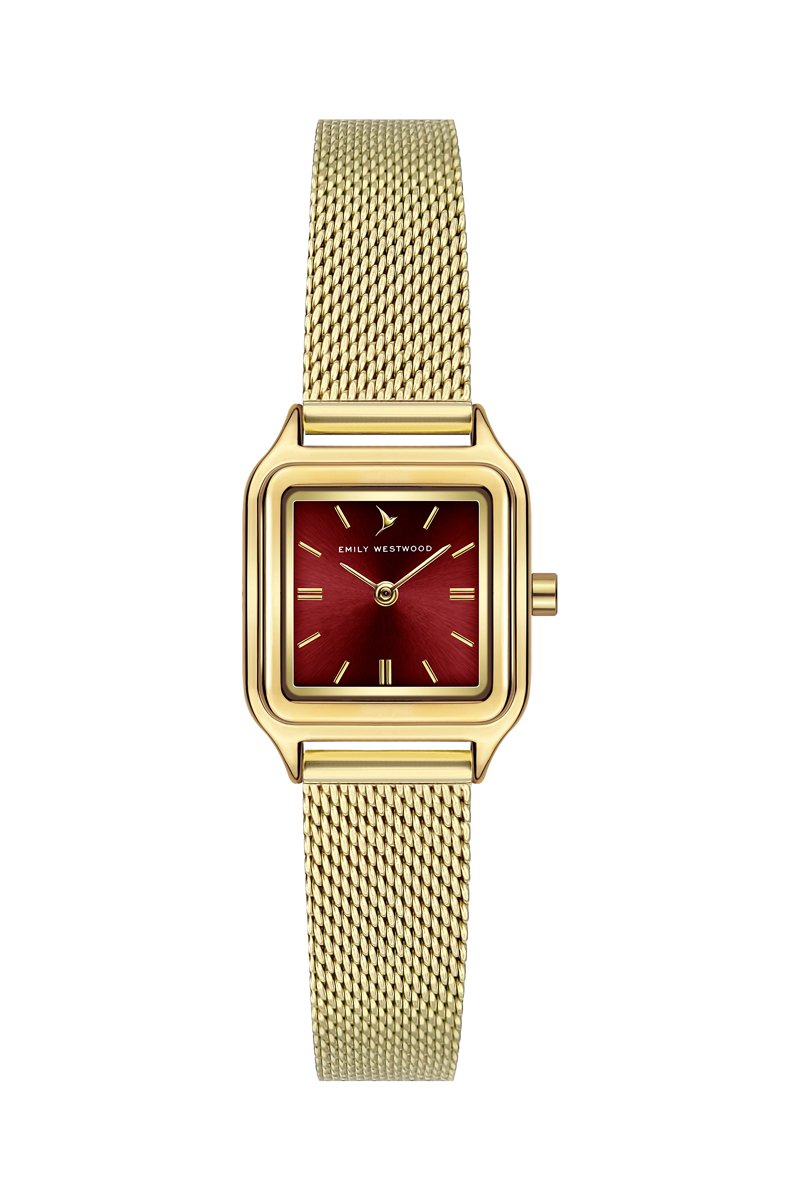 Orologio al quarzo in acciaio - Dorato e bordeaux - Emily Westwood