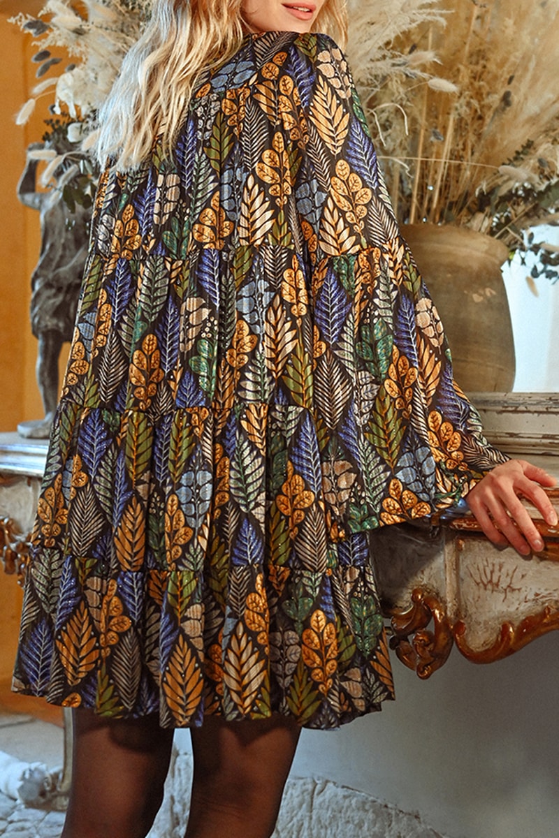 Abito a trapezio a maniche lunghe con coulisse.