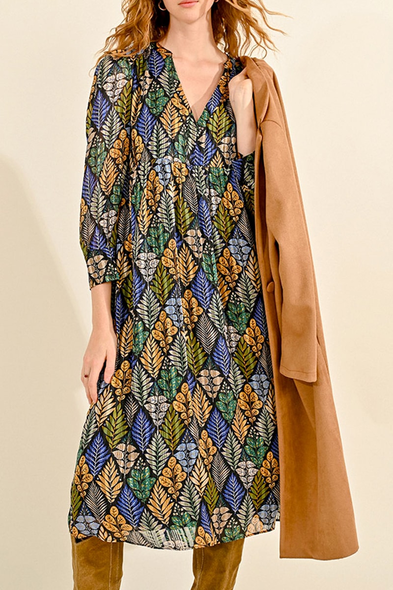 Abito midi a maniche lunghe abbottonate.