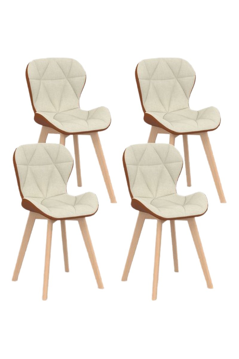 Sedie Gladys in tessuto beige e cammello e piedi in legno - set x 4