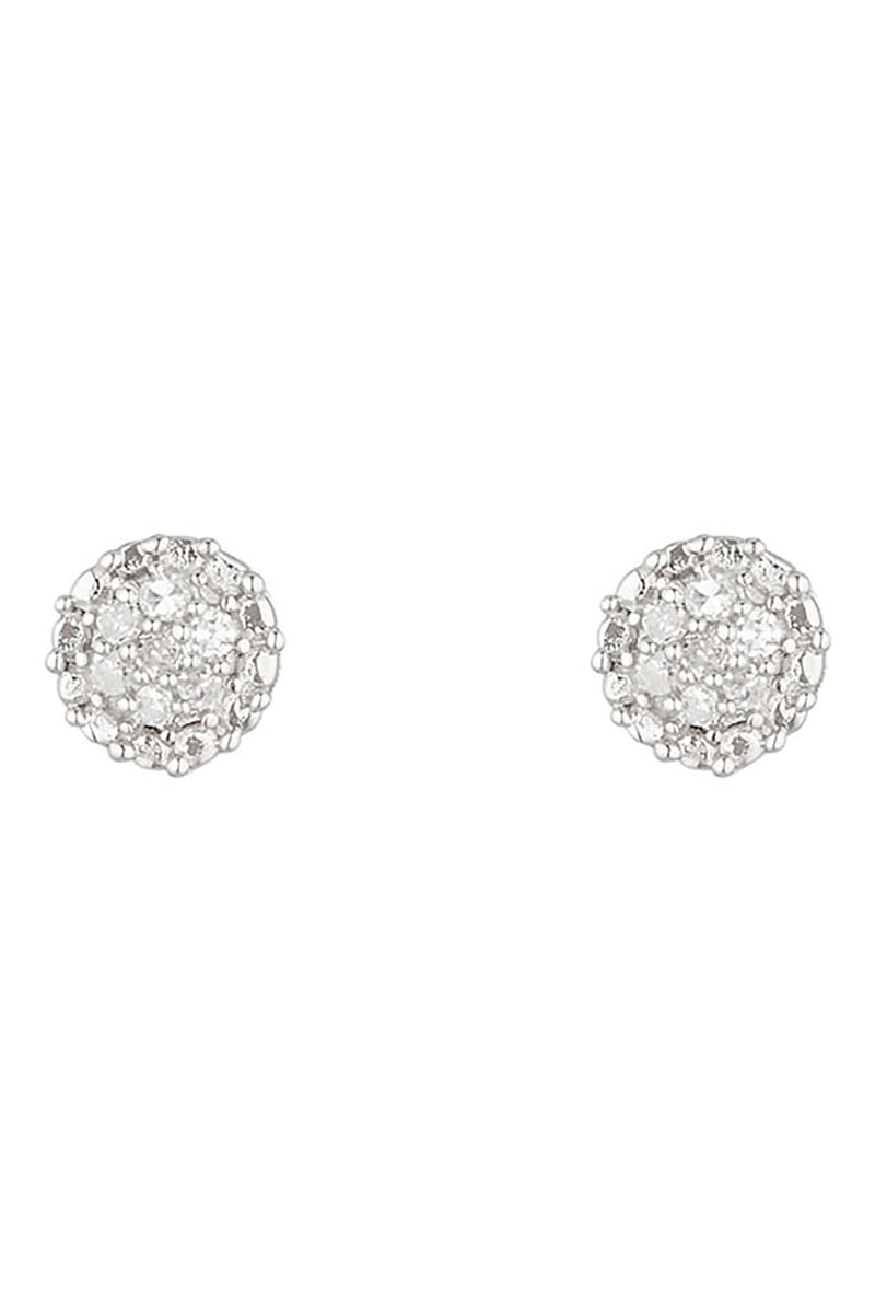 Orecchini Round Stud - Oro bianco e diamanti