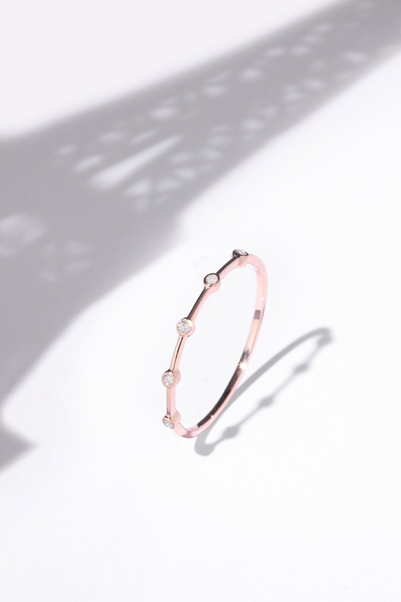 Anello in oro rosa con 5 diamanti.