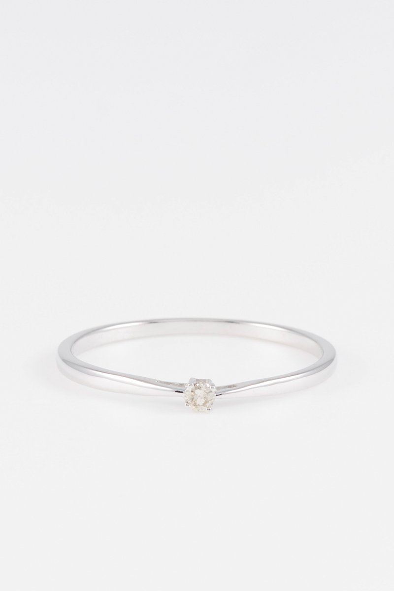 Anello in oro bianco con un diamante.