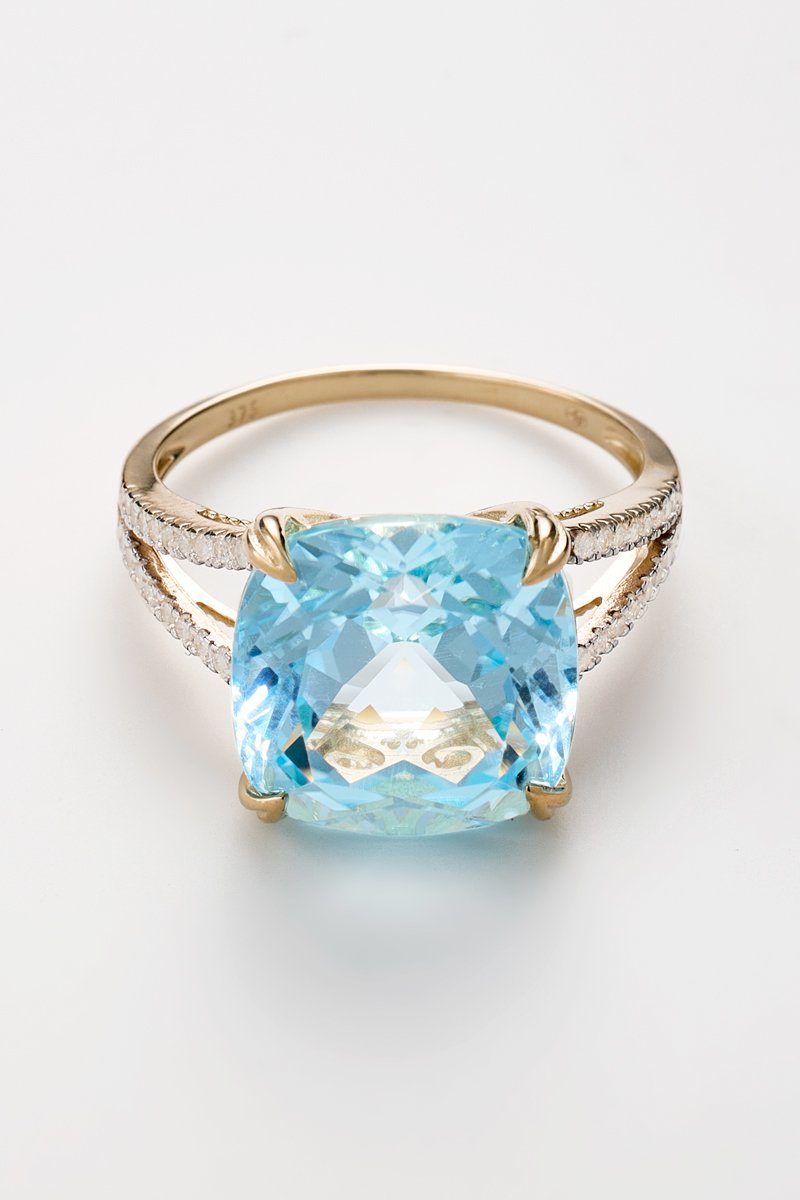 Materiali: oro giallo 375, diamanti 0,25 kt/40 e lolite 7,92 kt/1