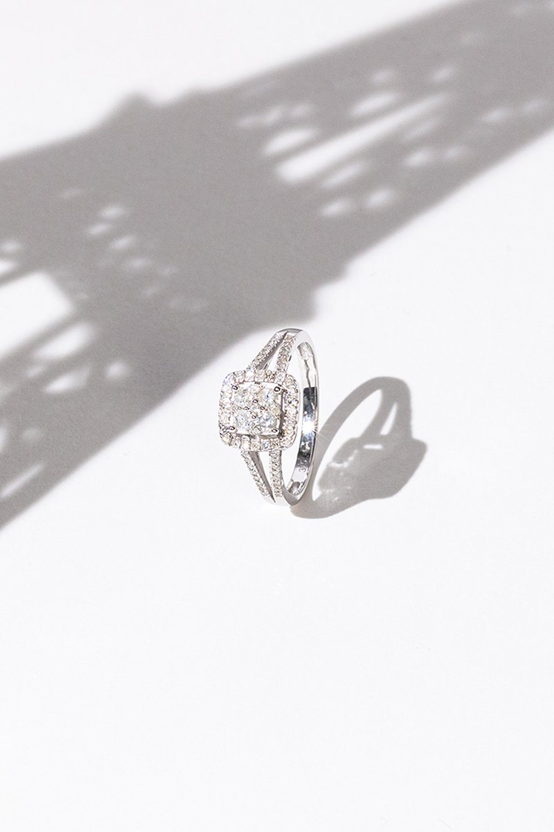 Anello in oro bianco con 65 diamanti.