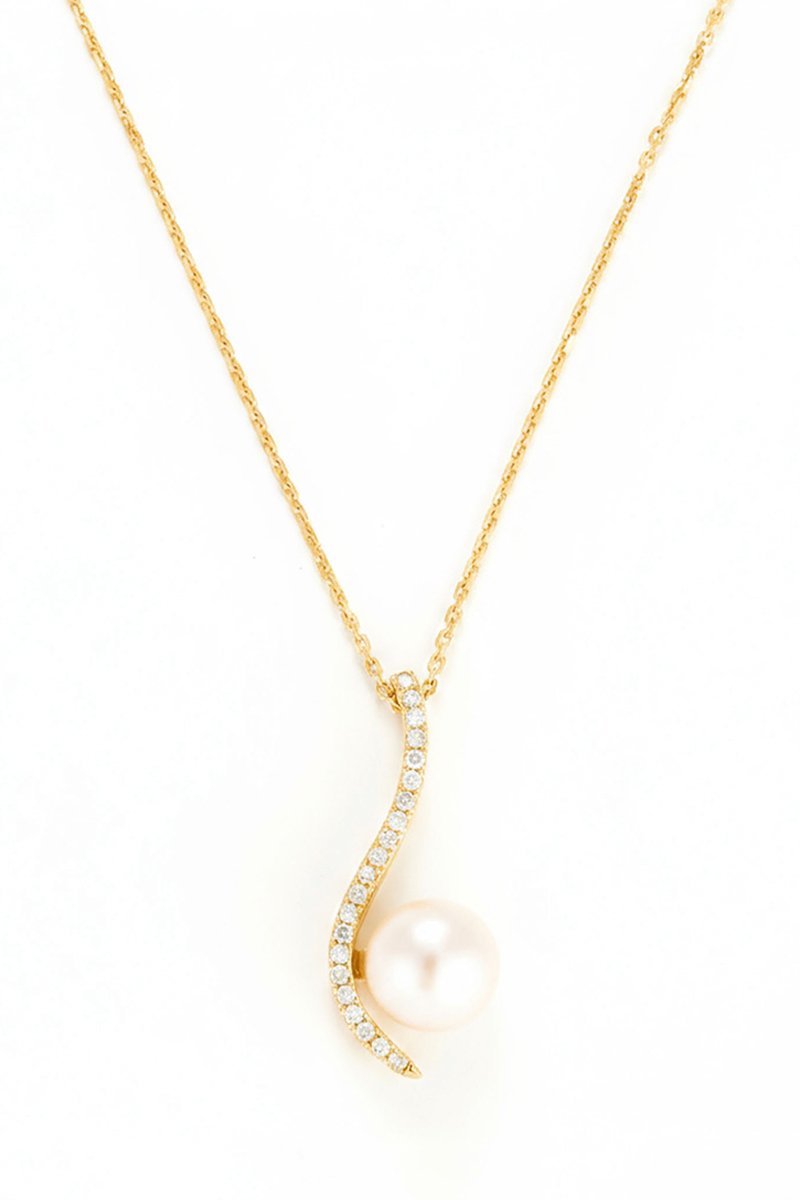 Ciondolo in oro giallo con 21 diamanti e una perla di imitazione.