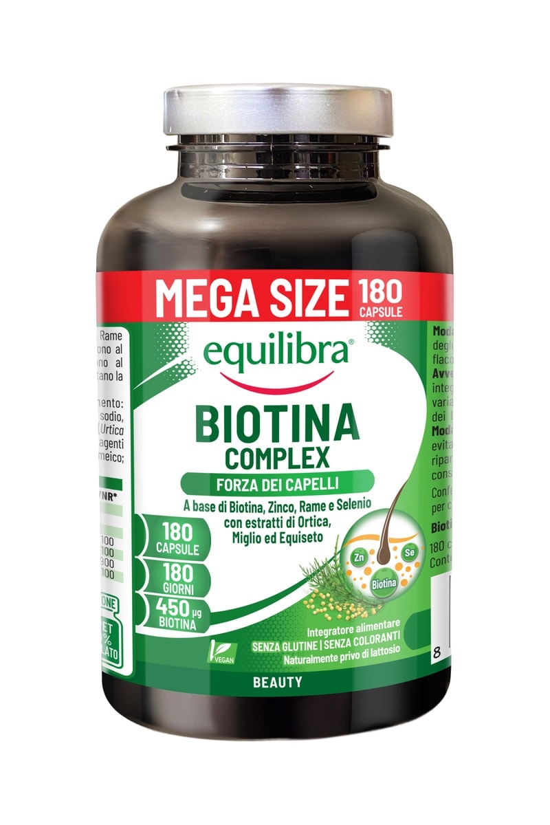 Biotina Complex Equilibra è un integratore alimentare a base di biotina, zinco, rame e selenio con estratti di ortica, miglio ed equiseto.