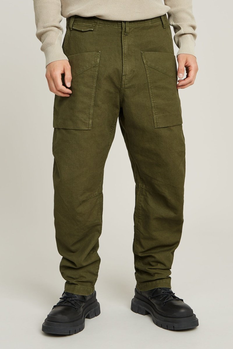 Questi pantaloni Fatigue Relaxed Tapered hanno un taglio affusolato dallo stile casual. Le pieghe sul lato e i cinturini alle caviglie completano il look. Questi pantaloni combinano tasche presenti nelle cuciture laterali e tasche sul davanti. Il retro presenta una tasca con patta chiusa da bottoni a pressione. Utilizzare la cintura per stringere la silhouette.