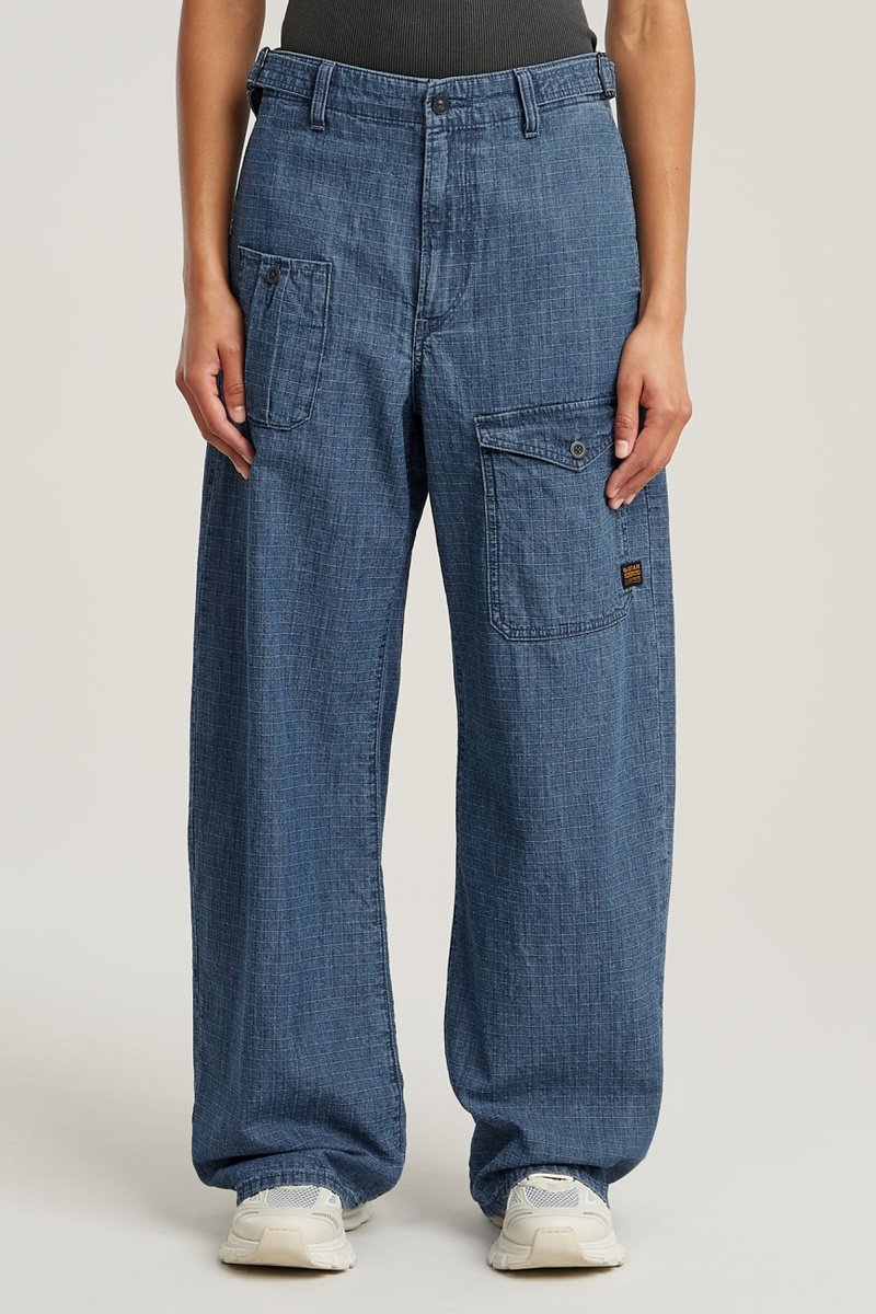 Jeans cargo a vita alta Belted - Indaco