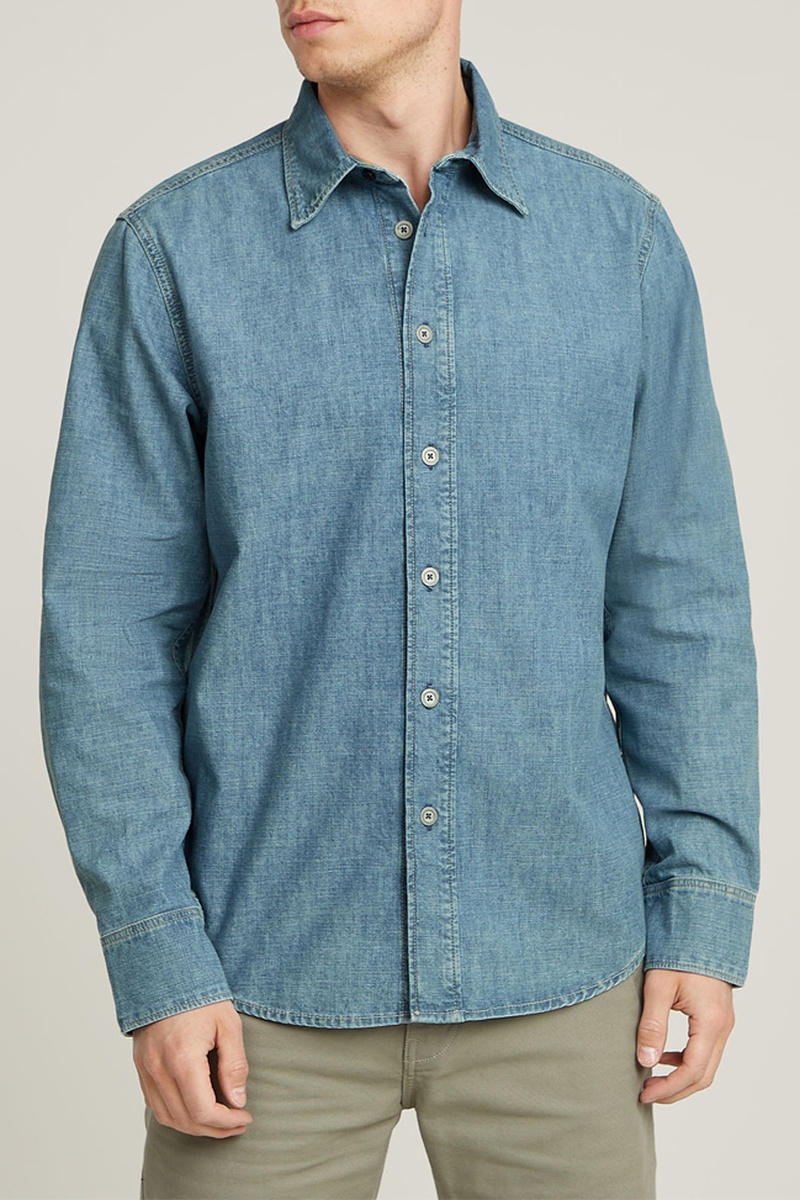 La camicia Regular Denim presenta un taglio slim e un orlo strutturato Una piega sotto l’inserto delle spalle crea volume nella schiena.