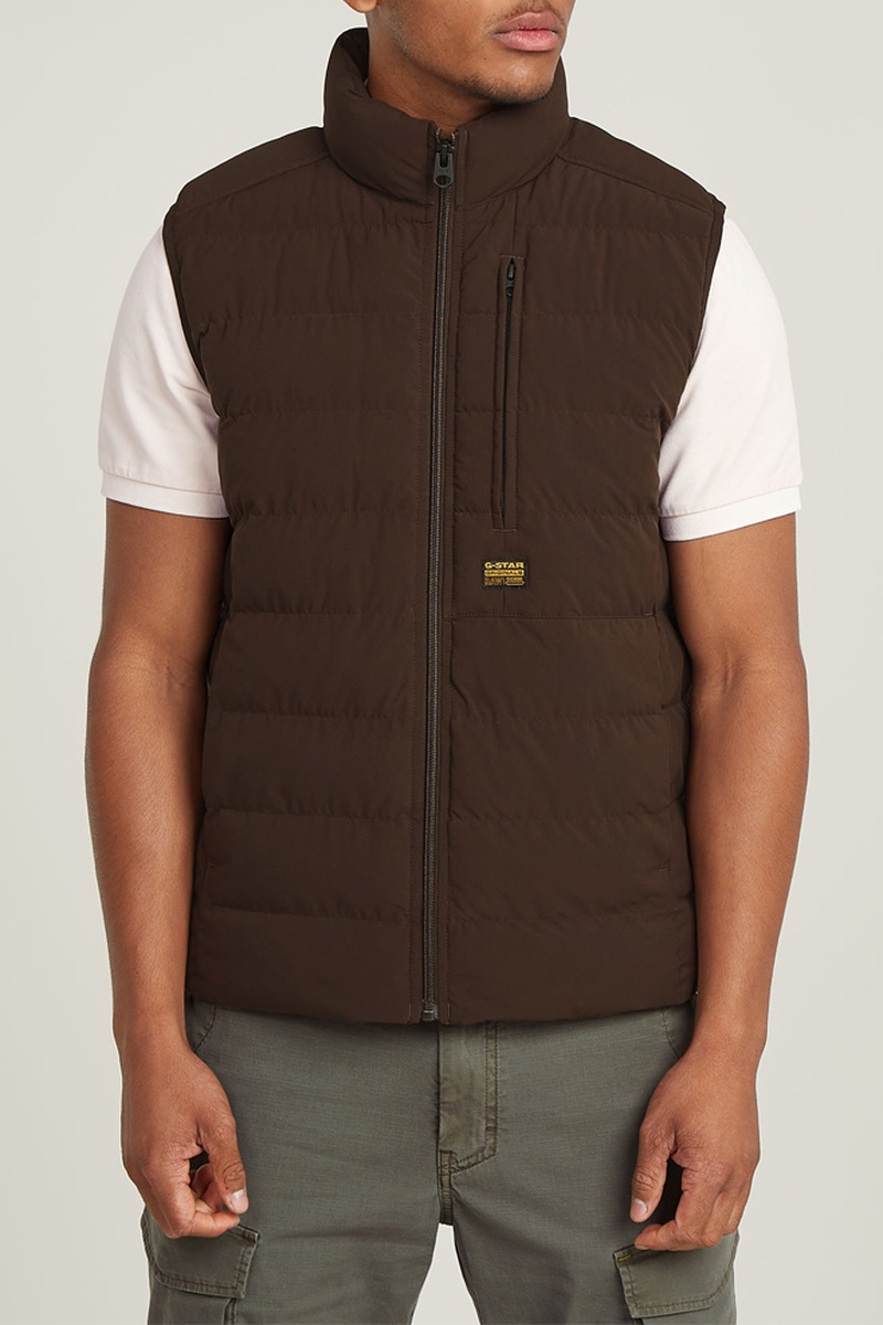 La giacca senza maniche Foundation è matelassé e presenta impunture orizzontali. Tasche sul petto e sui lati. Per maggiore praticità, una tasca aggiuntiva e un anello di aggancio sono stati aggiunti all'interno.
