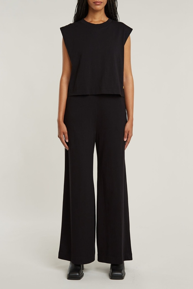 Top e pantaloni wide legs in cotone bio Double Layer - Nero