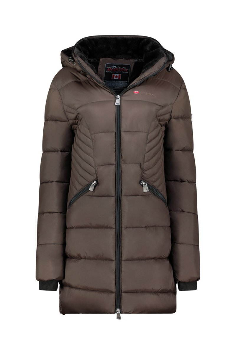 Piumino lungo con cappuccio Beeana - Marrone