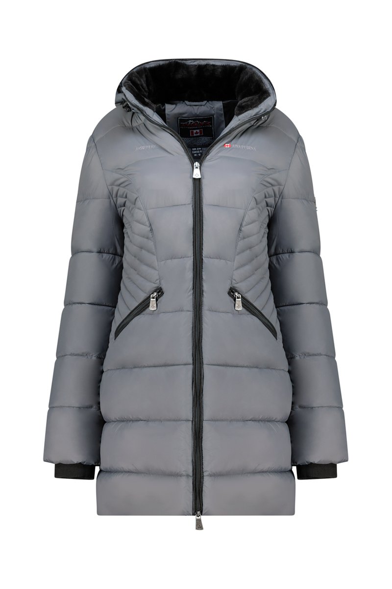 Piumino lungo con cappuccio Beeana - Grigio scuro