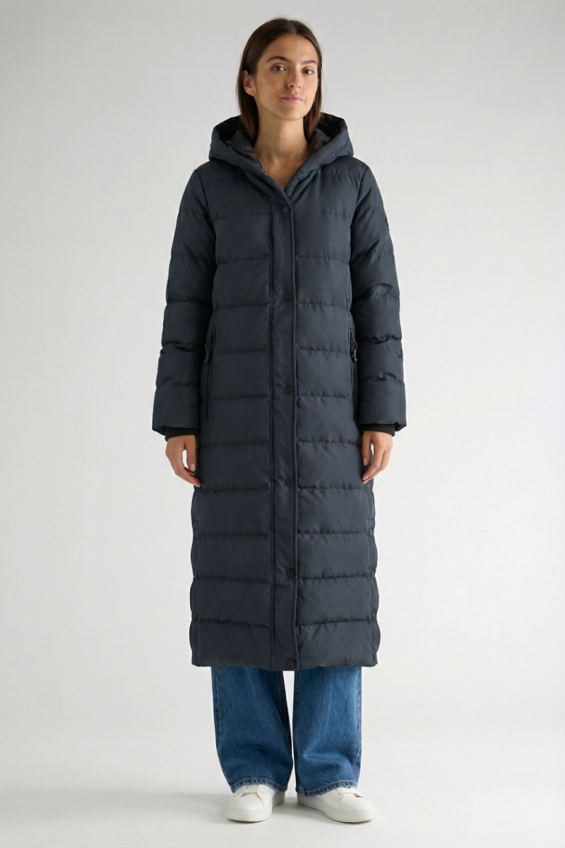Piumino lungo con cappuccio Belenana - Navy