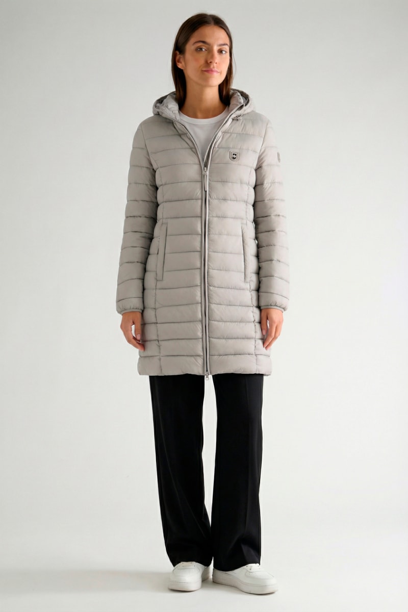 Piumino lungo con cappuccio Akitalana - Grigio chiaro