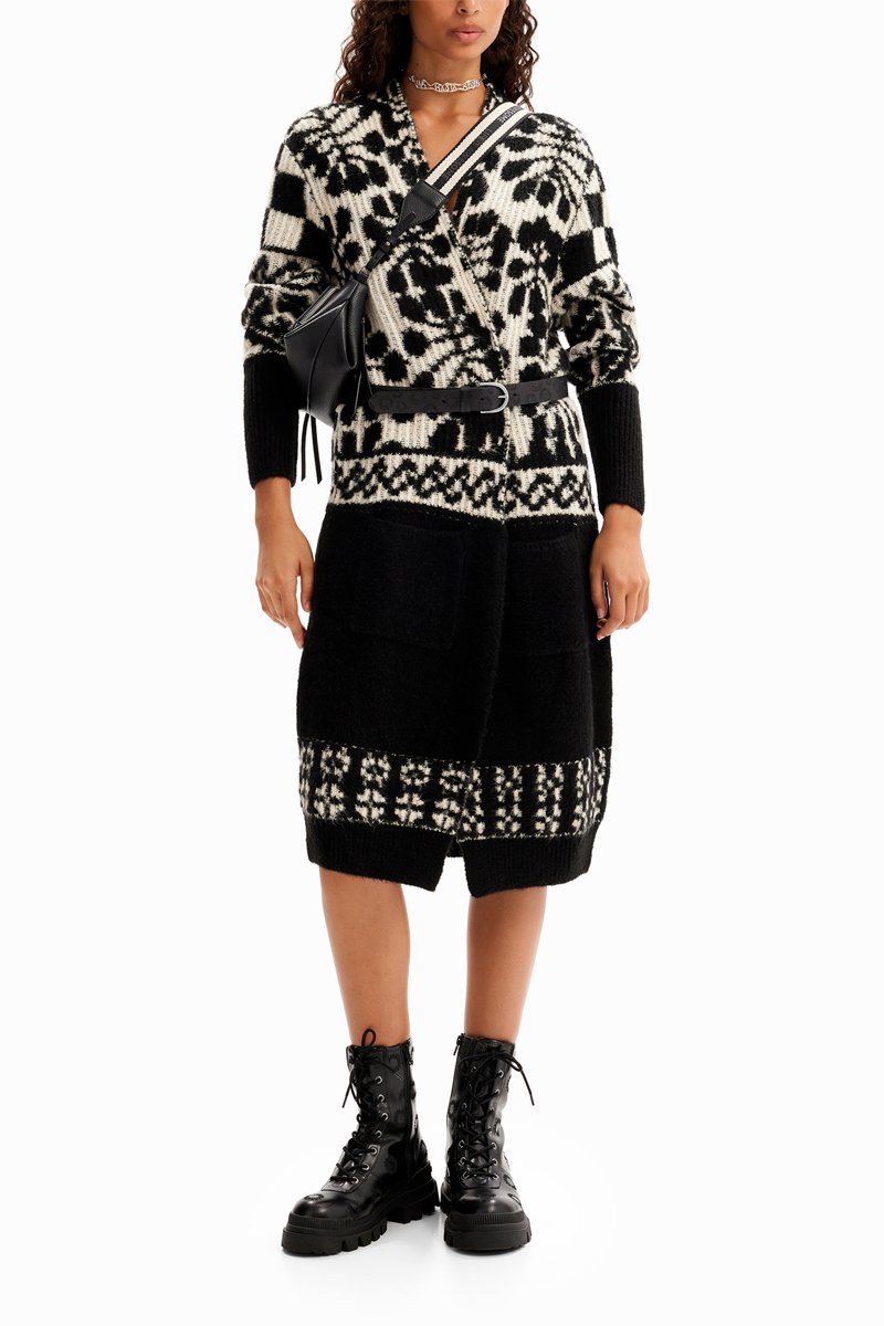 Cardigan lungo a maniche lunghe.