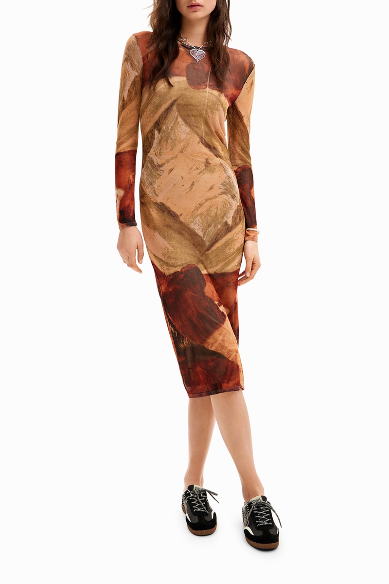 Abito a tubino a maniche lunghe.