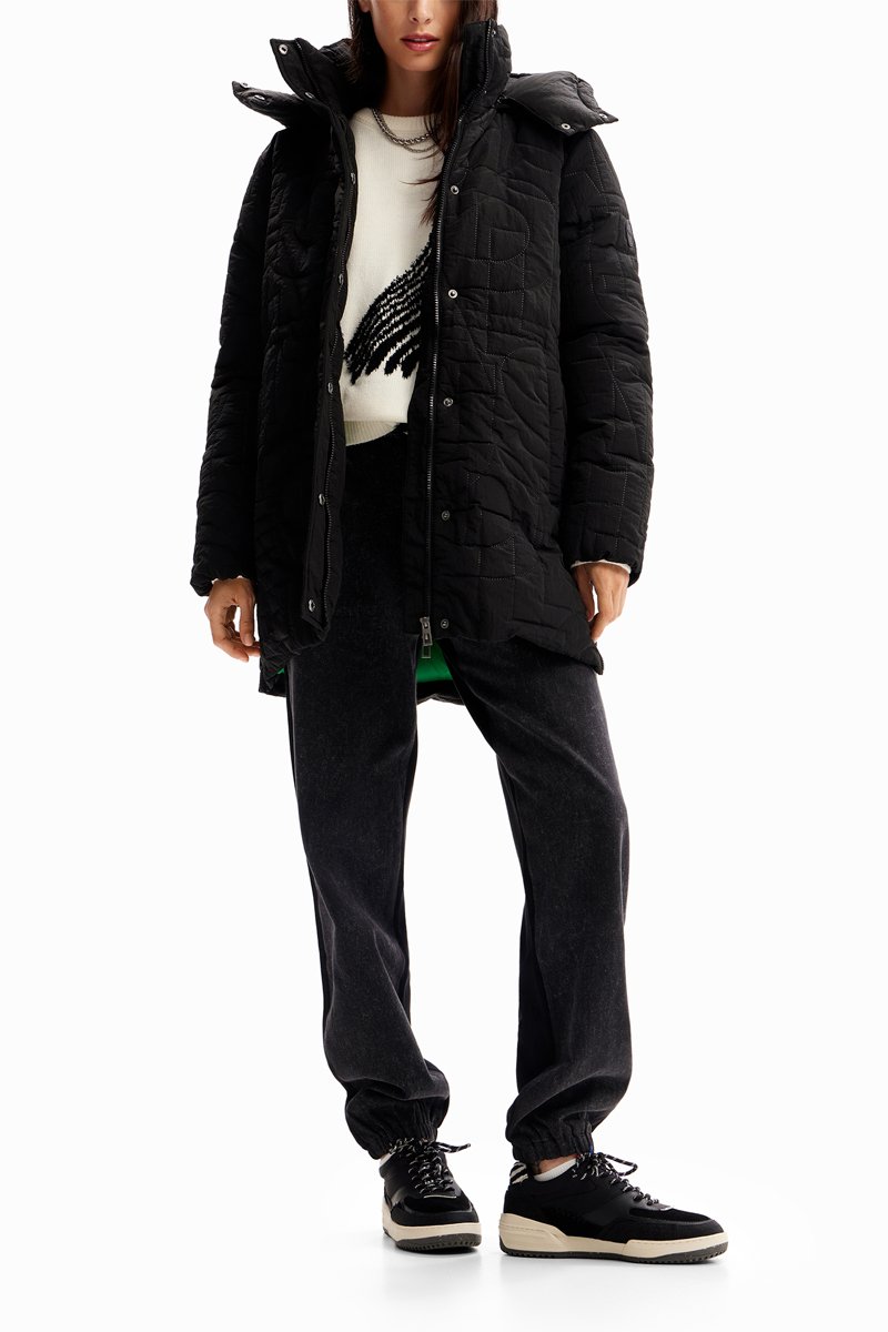 Piumino con cappuccio - Nero