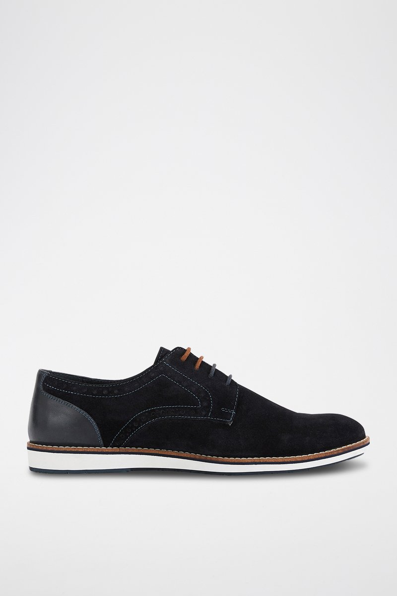 Stringate in pelle scamosciata e pelle.