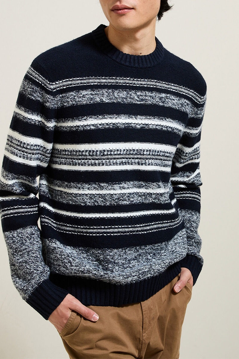 Motivi a righe sulle maniche, sul davanti e sul retro.