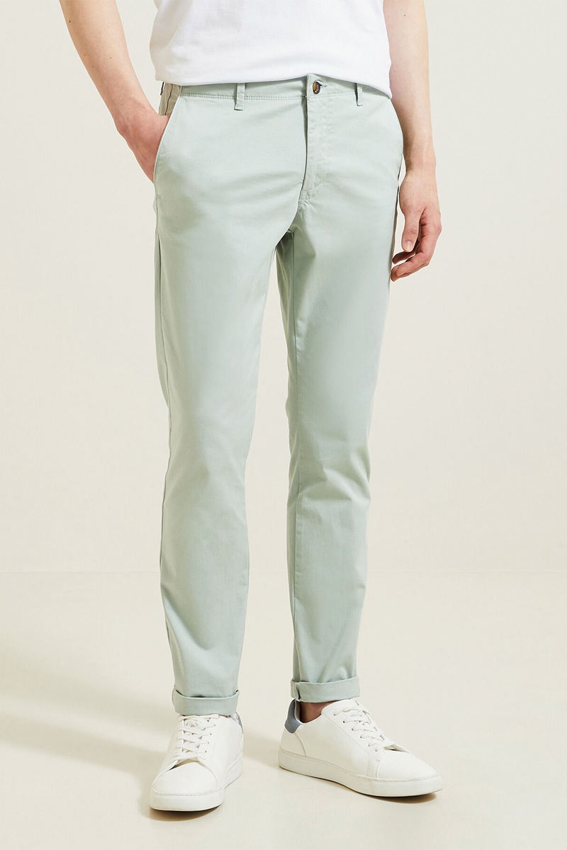 Pantaloni chino slim in cotone bio - Verde acqua - Lunghezza 34