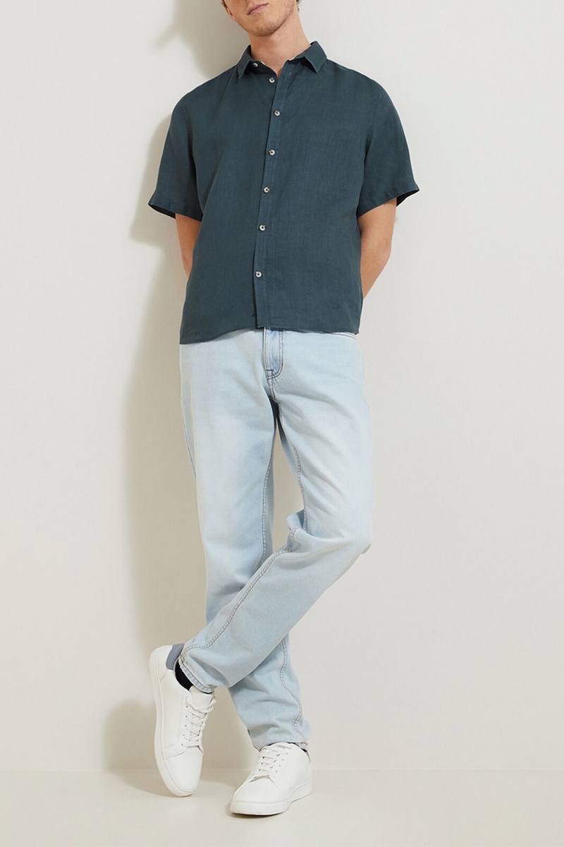 Camicia regular in lino - Turchese