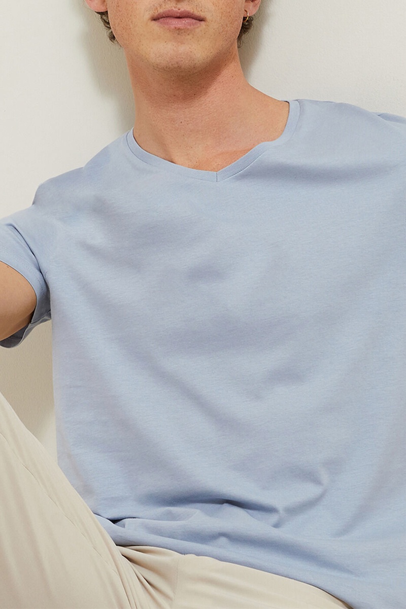 T-shirt slim in cotone bio - Celeste
