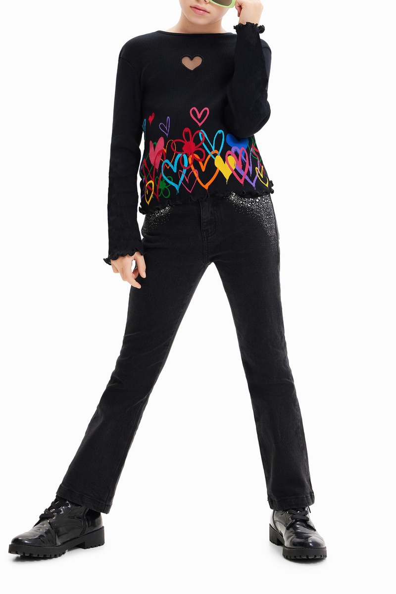 Motivi cuori e fiori sul davanti.