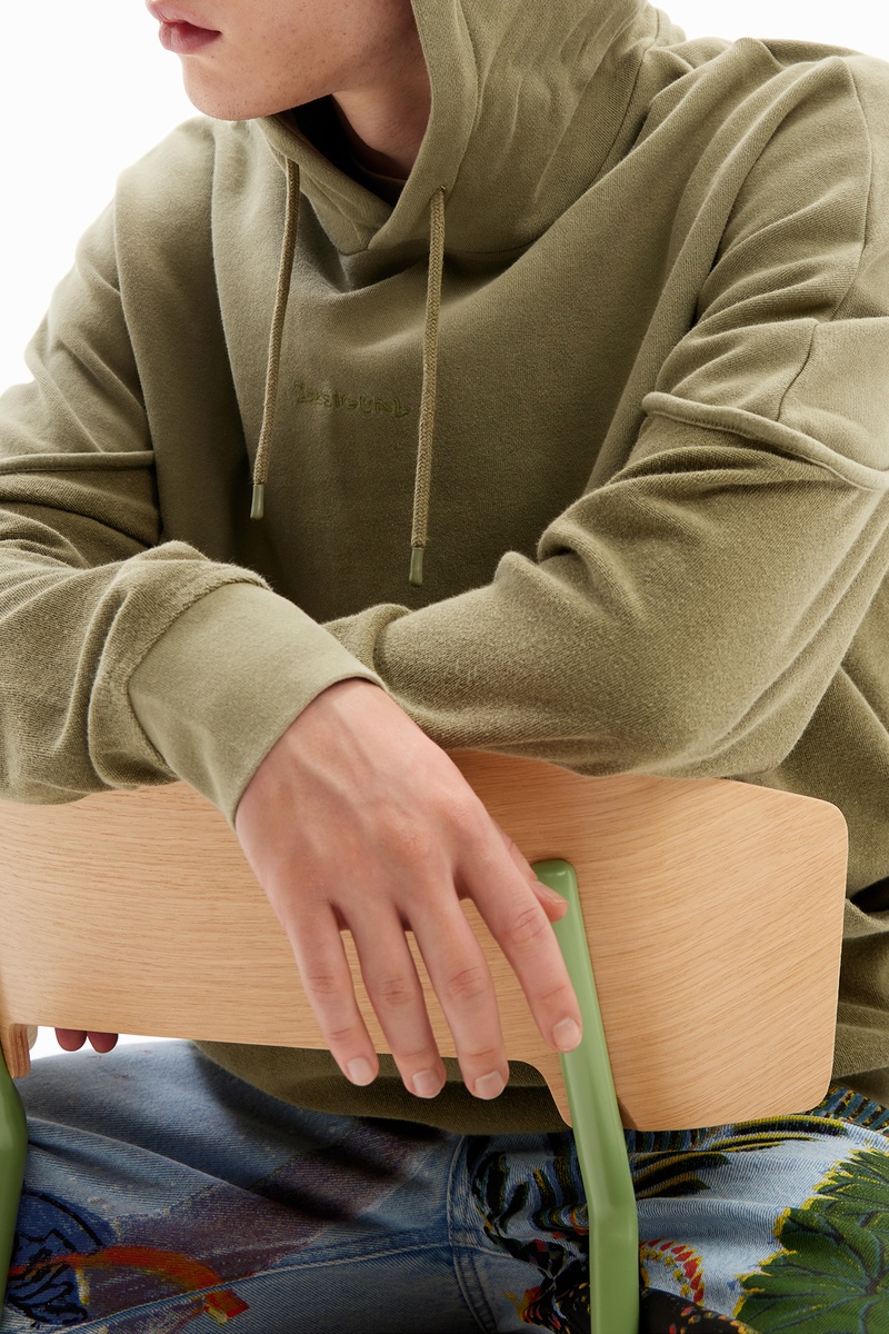 Maglia con cappuccio con coulisse a maniche lunghe.