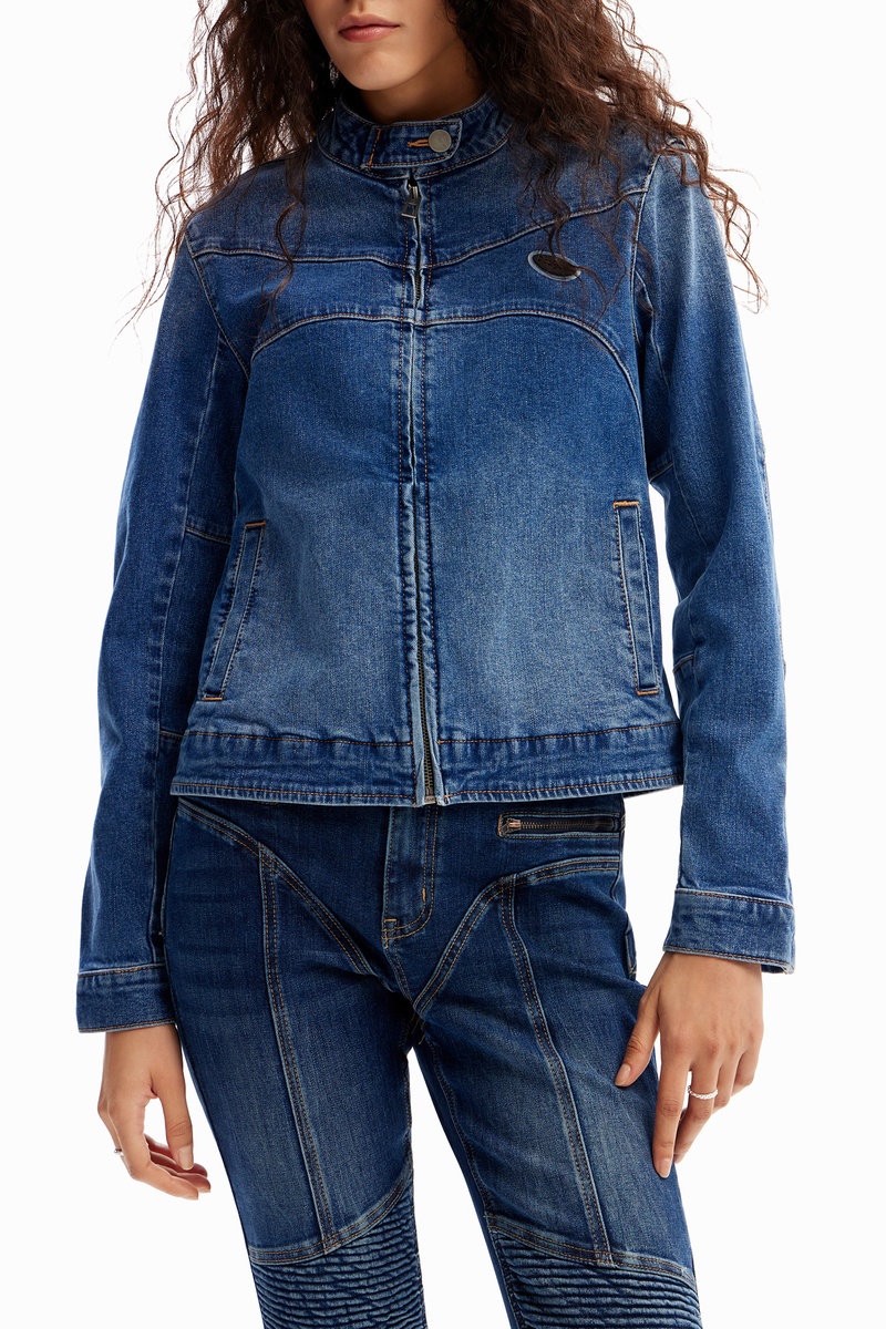 Giacca in jeans regular a maniche lunghe con cerniera.