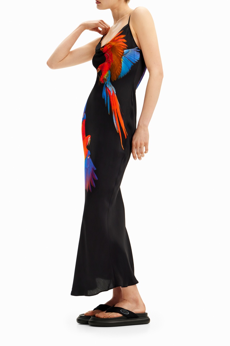 Motivo pappagalli sul davanti e sul retro.