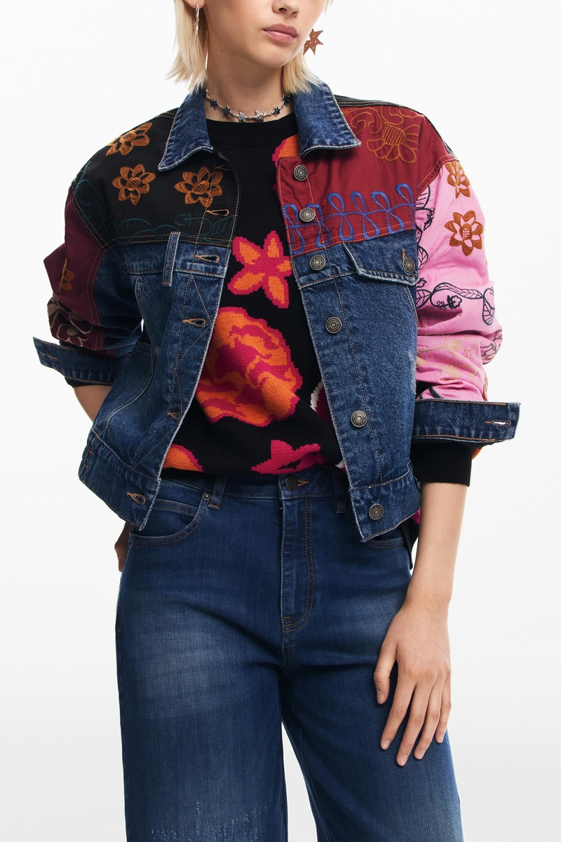 Motivi fiori ricamati sulle maniche e sul davanti.