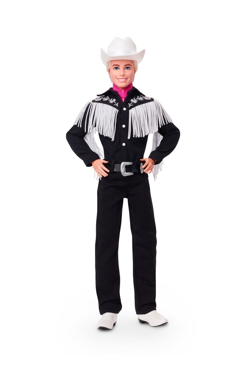 Questa bambola Ken da collezione sfoggia un outfit da cowboy per un look sorprendente, ispirato all'outfit western di Ken nel film Barbie.