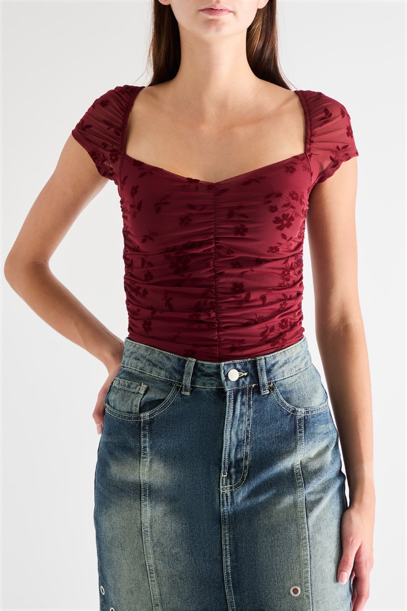 Top con arricciature a maniche corte.