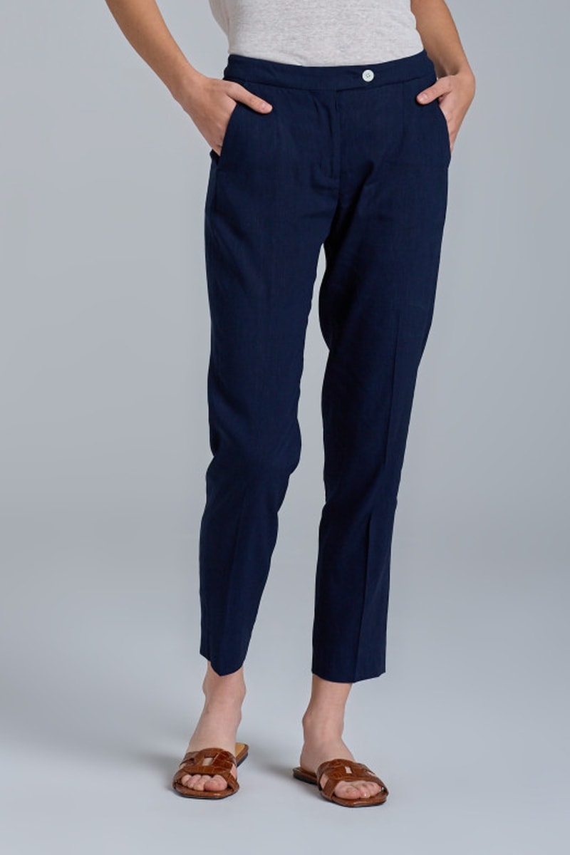 Pantaloni a vita alta in lino - Navy