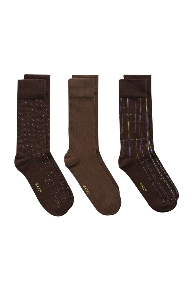 3 paia di calze di cui 1 a pois e 1 con motivi a quadri.