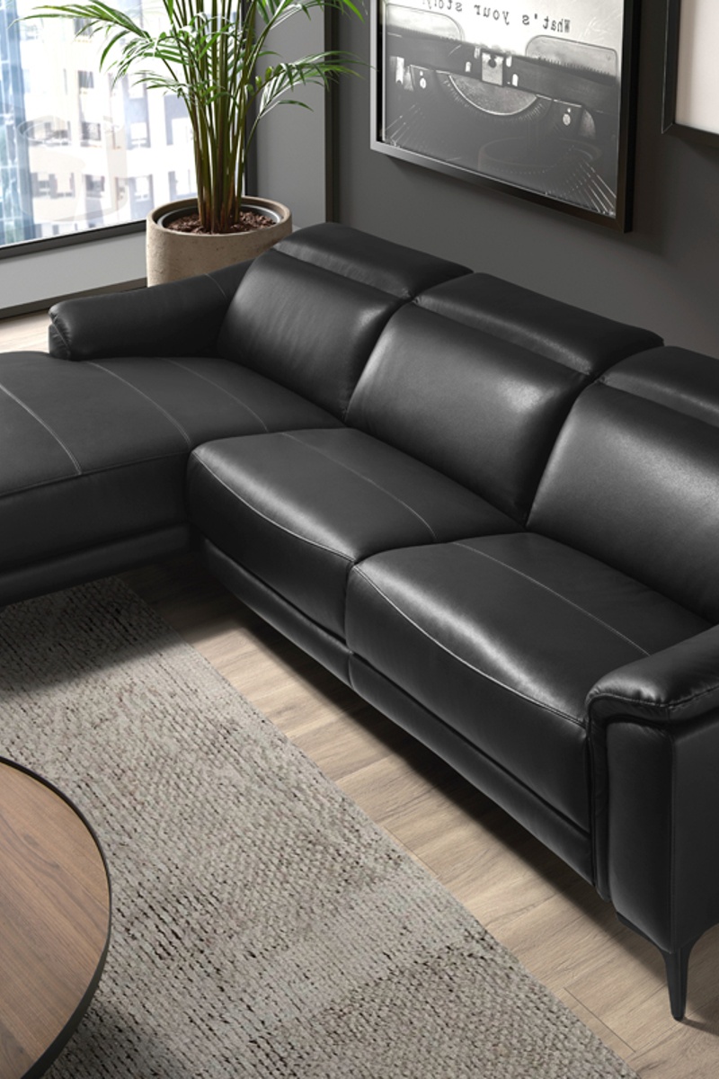 Divano angolare sinistro - Nero - 5 posti - In pelle