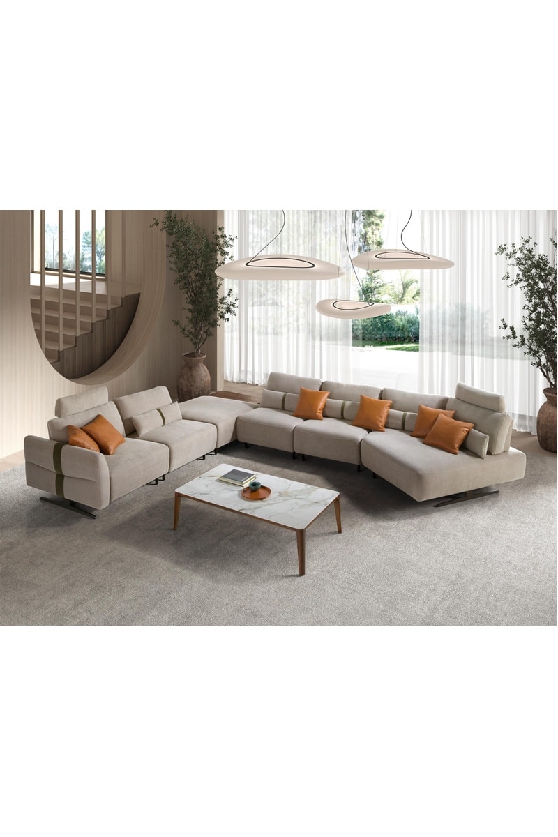 Divano angolare sinistro modulabile - Beige - 5 posti - In poliestere