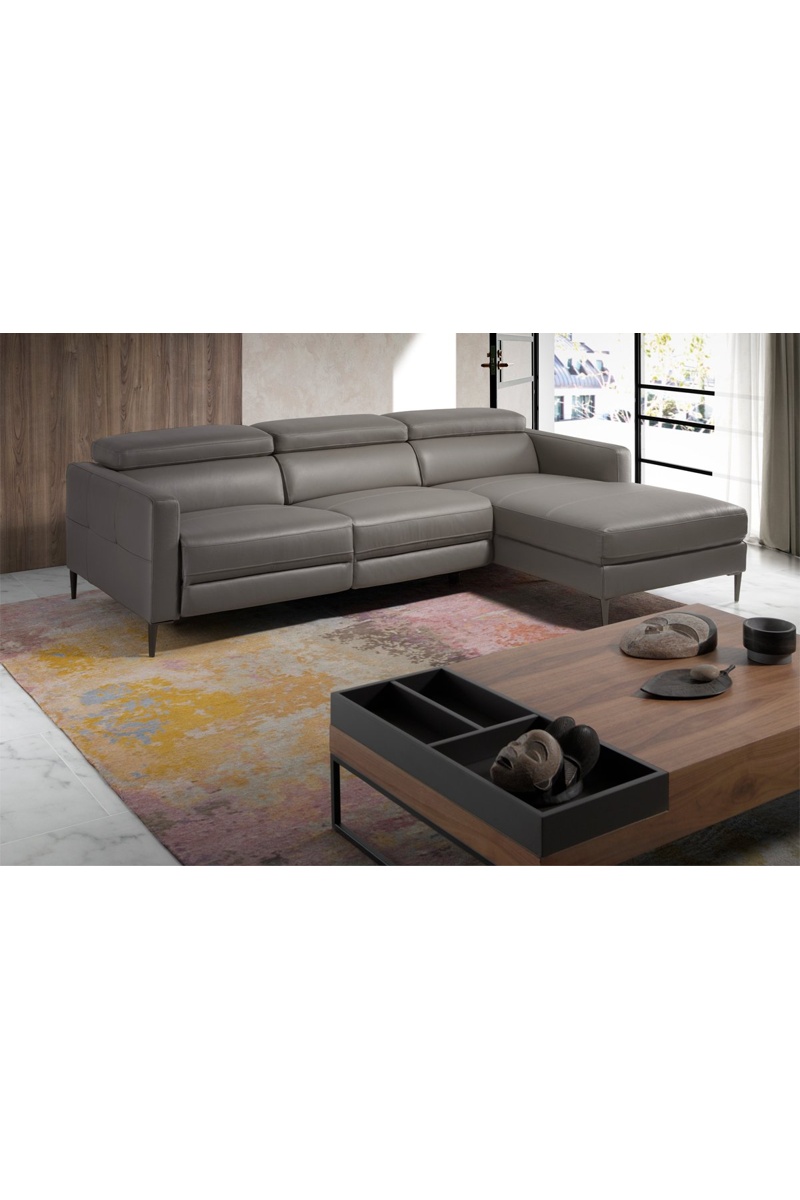 Divano angolare destro - Grigio - In pelle