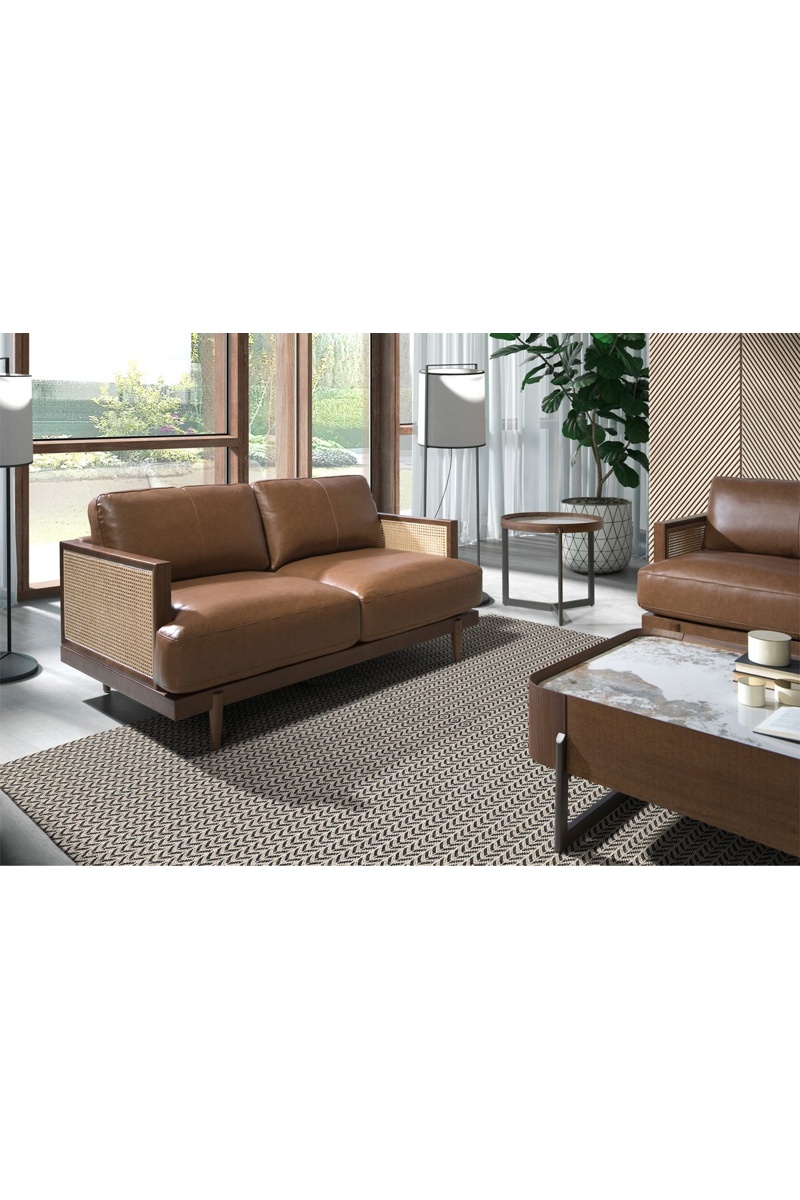 Materiali: pelle, pino, schiuma poliuretano e rattan