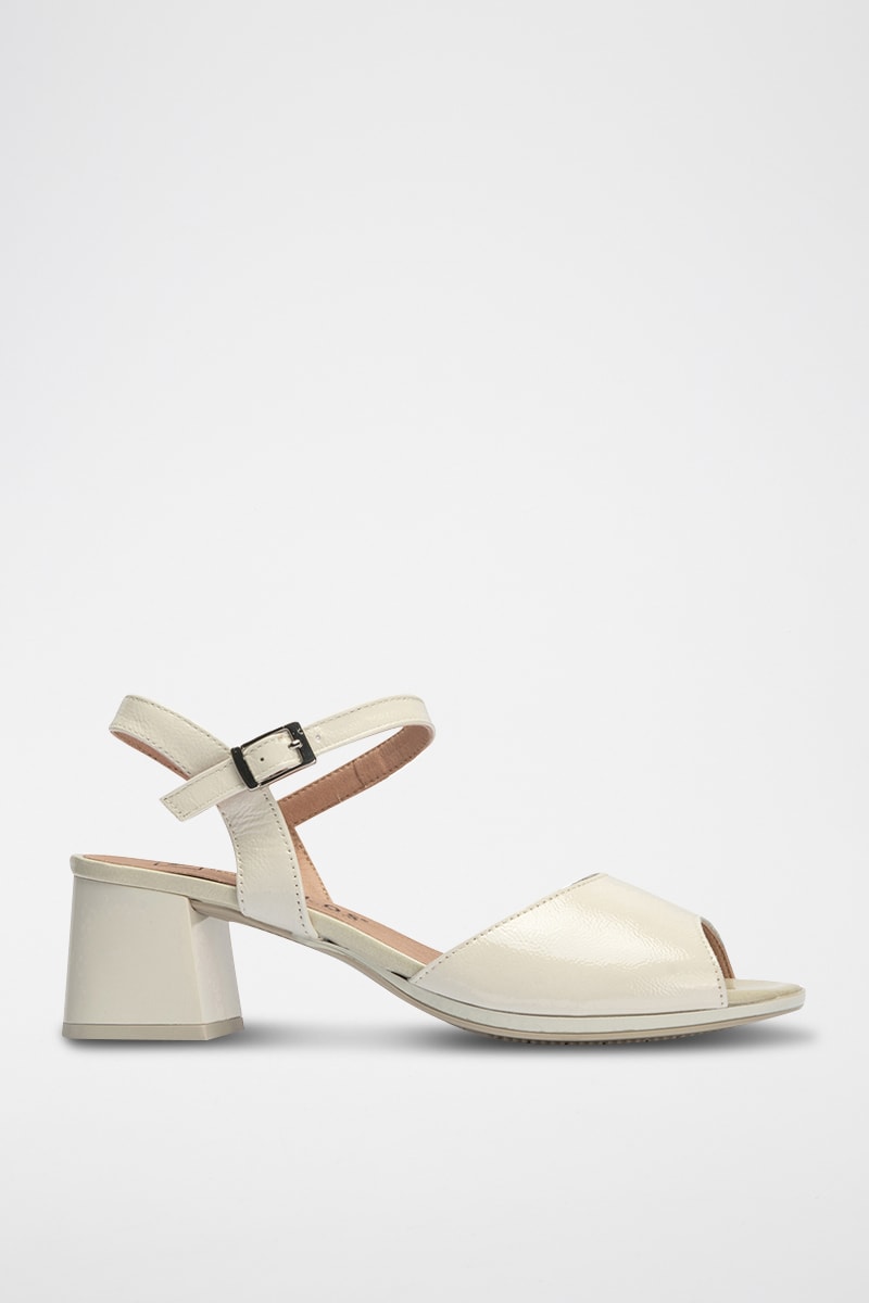 Sandali con tacco in pelle verniciata - Bianco
