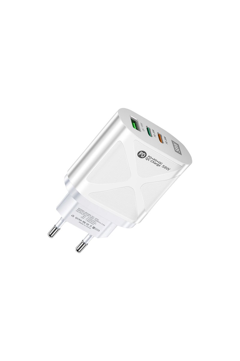 Caricabatteria presa elettrica 58W USB Quickcharge & Double PD USB tipo-C - Bianco