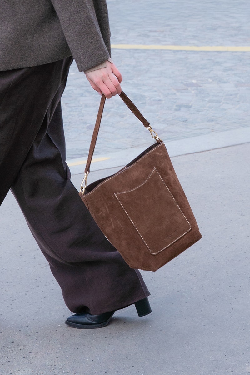Borsa a spalla in pelle scamosciata.