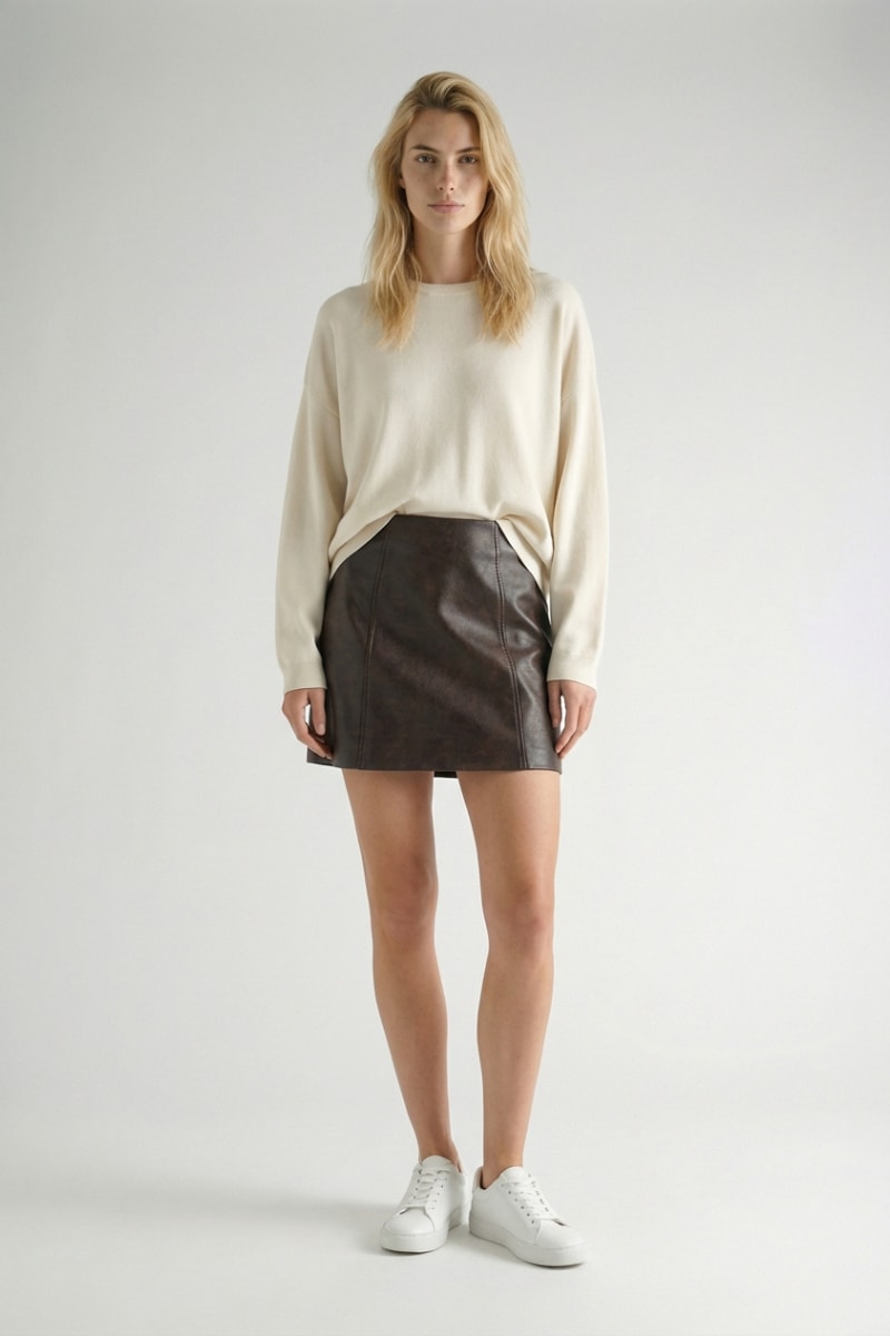 Gonna taglio dritto in pelle.