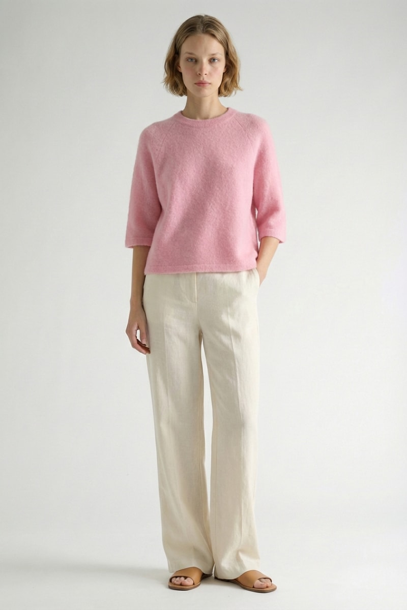 Maglia in misto alpaca e lana con maniche mezza lunghezza raglan.