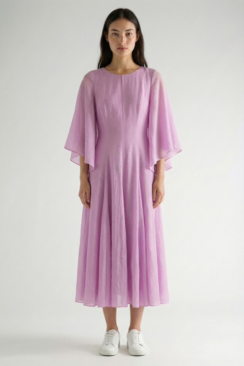 Abito midi con maniche a 3/4 a farfalla.