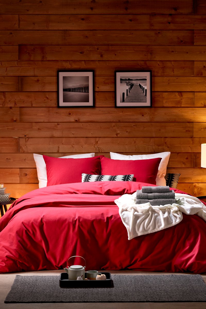 Parure copripiumino in flanella di cotone 39 fili/cm² - Rosso