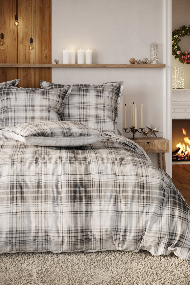 Parure copripiumino in flanella di cotone Axel - Grigio e bianco